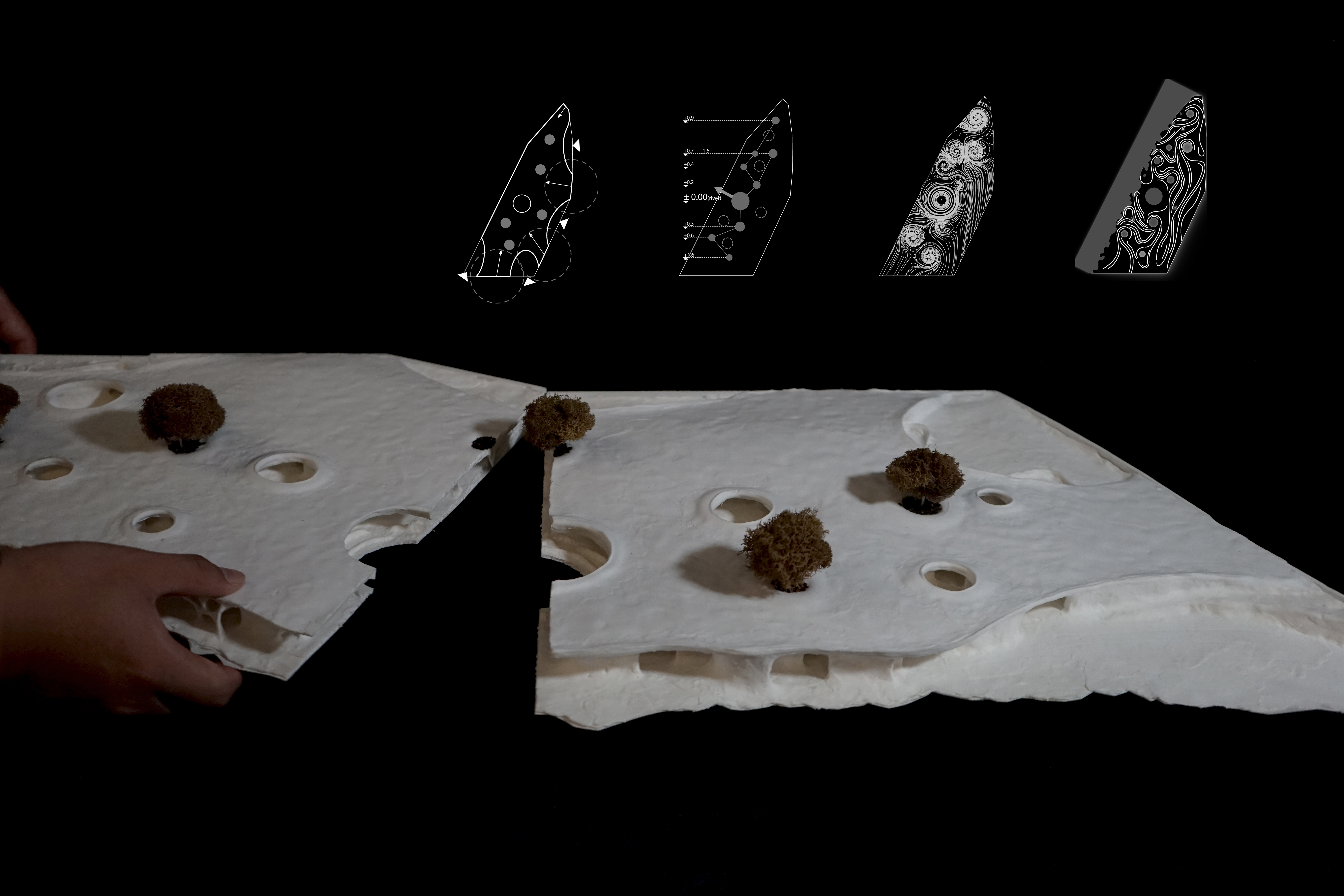 The unclaimed have been forgotten by society. Our project seeks to preserve their memory as unique and important individuals. In the end we are all equal, regardless of our circumstances in life during our material investigations, we discovered that plastic, glass and foam have similar properties and micro-structure and they are easy to be transformed into diverse spaces, which accords to our core value. Then, because it is a cemetery, taking storage as main function, we figure out that we can dive into microscope of the 3 materials to explore more possibilities, because the microstructure is highly efficient in storing their particles. Then we found they are either too repetitious or low space fluidity, But it inspires us to look on the microscope of the bone—the core of our body, the leftover of death, and we are surprised to discover its excellent space fluidity and high diversity.