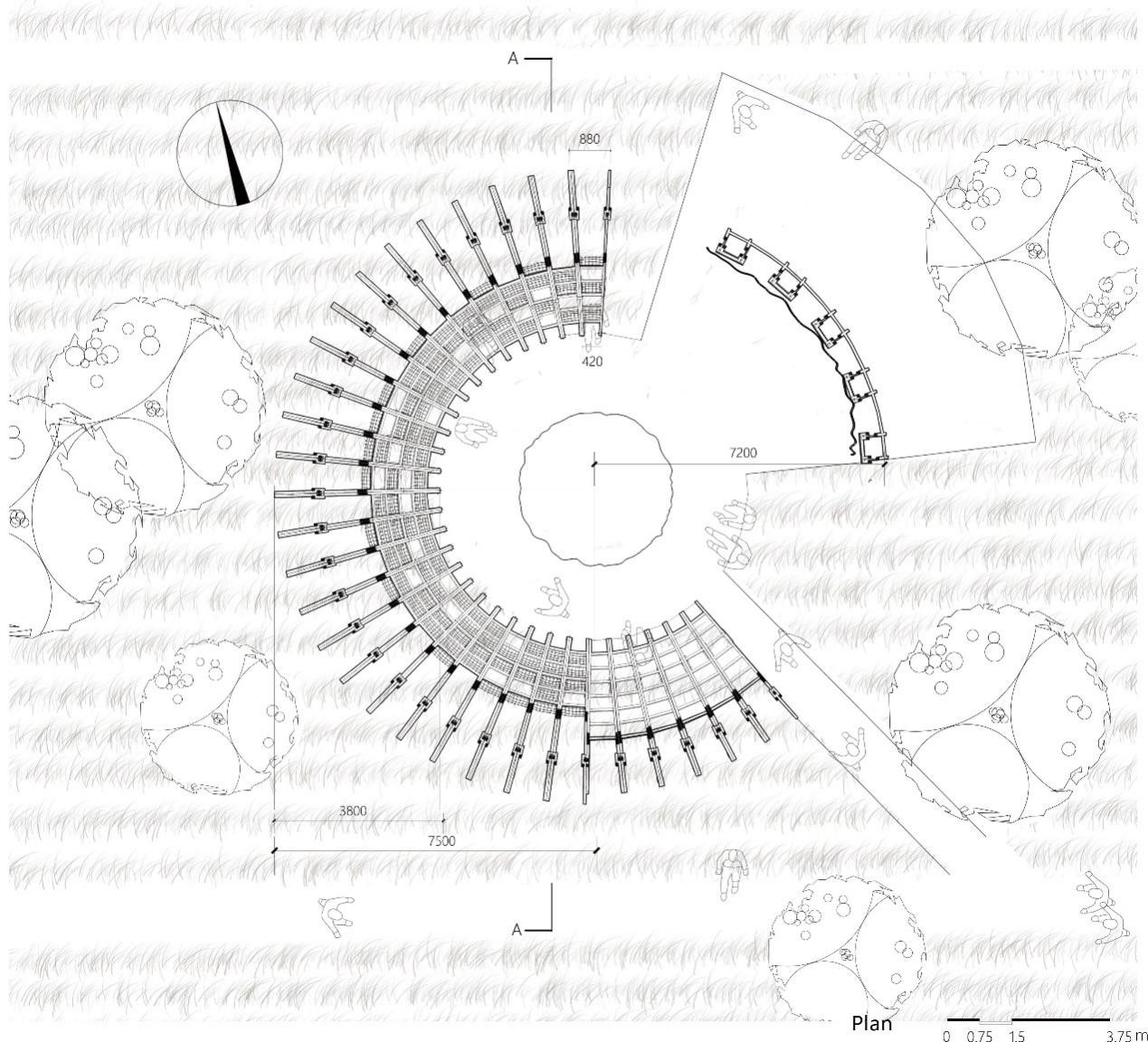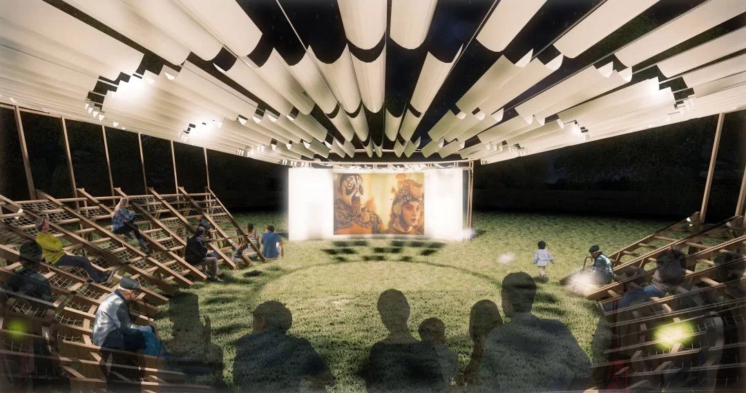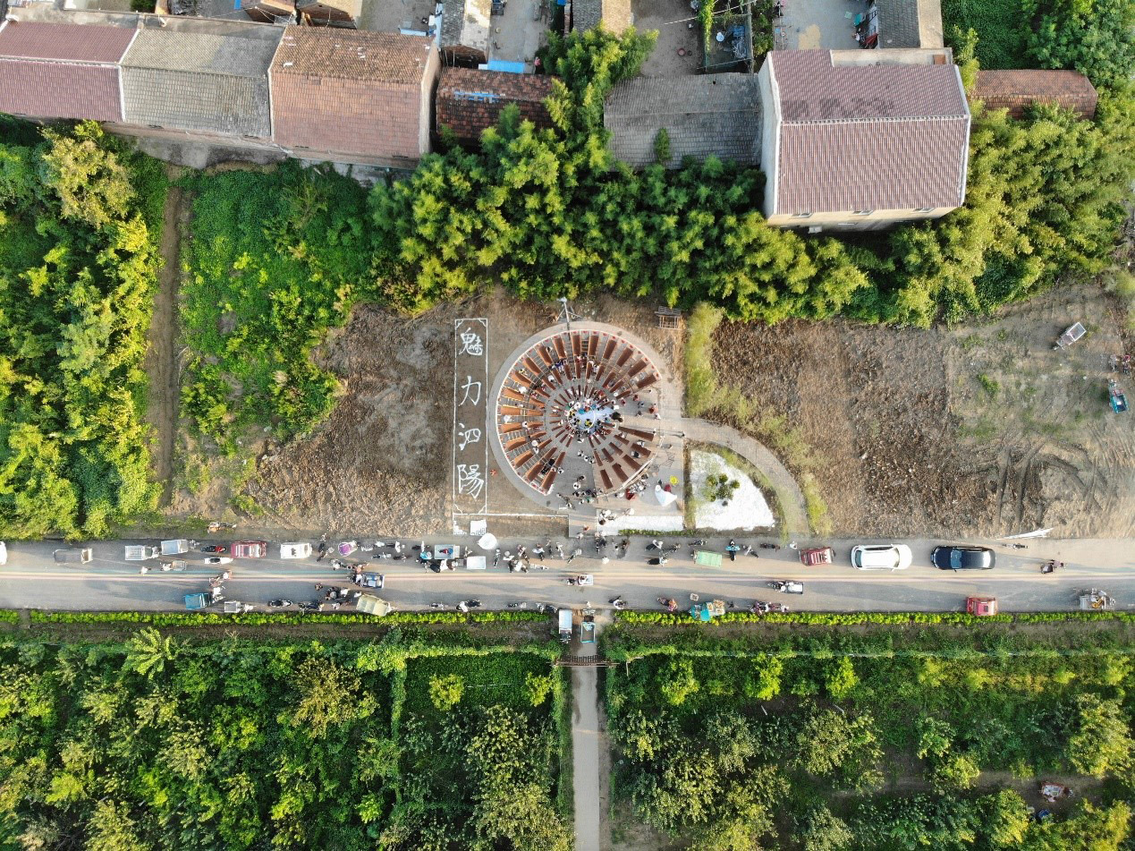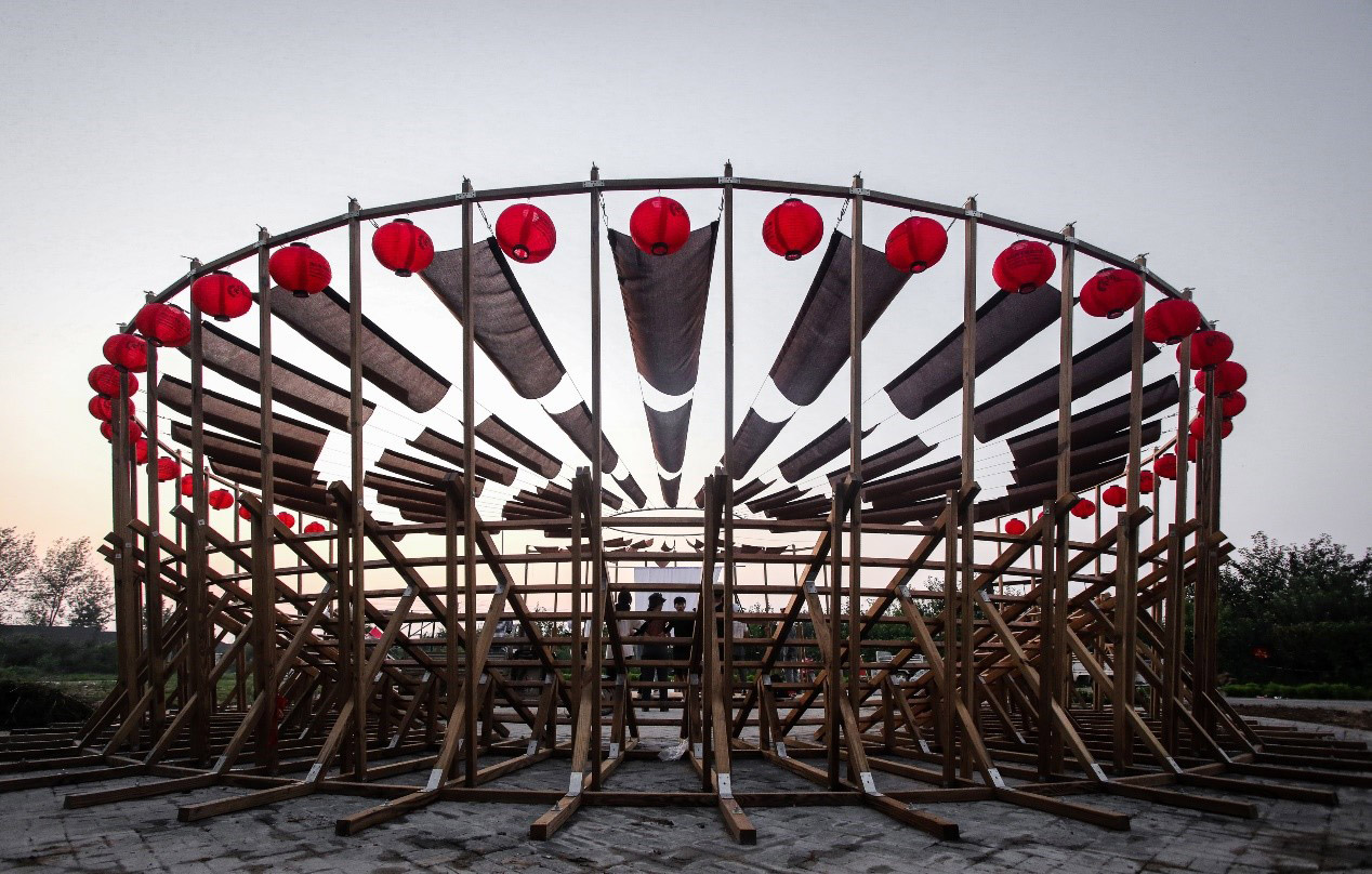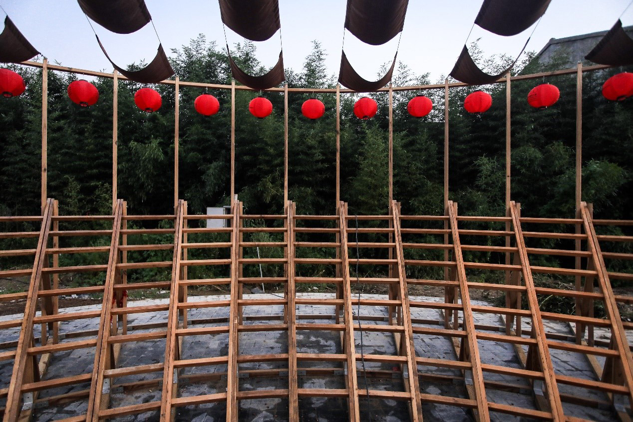 “Climbing the ladder – party theater”: use the ladder to open the party. Aiyuan Town is a small town that grows fruit trees. The ladder is the most important production tool for every household. It comes with local behavior symbols. In order to integrate into the local life, based on the form of assembly, the ladder and the drying frame for busy farming are the main elements of the theater. Each household carries tools and materials to the pear garden to build or disassemble together to form a mobile assembly theater.